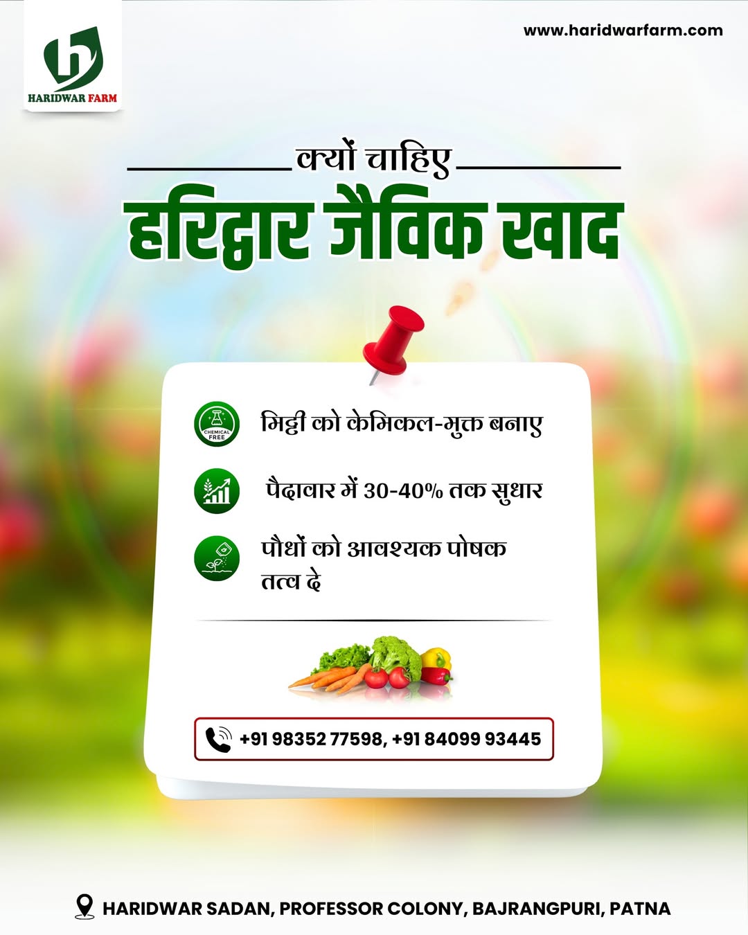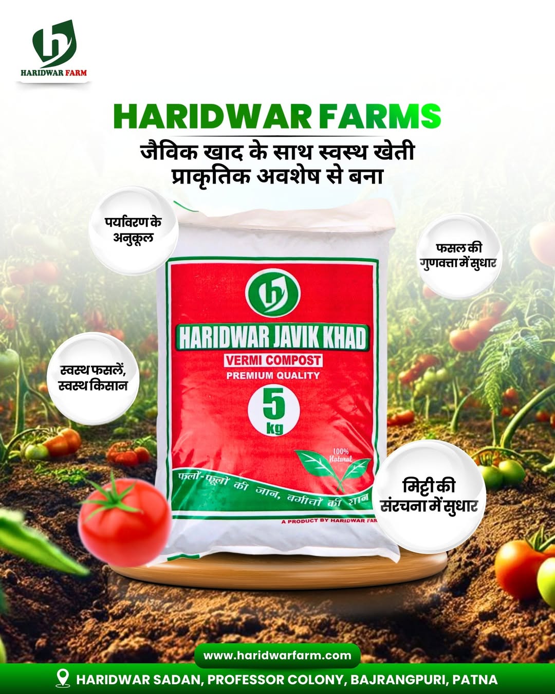 Haridwar Farms is dedicated to promoting sustainable agriculture and enhancing farm productivity. Located in Block Paliganj, Khanpura, District Patna, we provide high-quality organic fertilizers and comprehensive farming solutions.